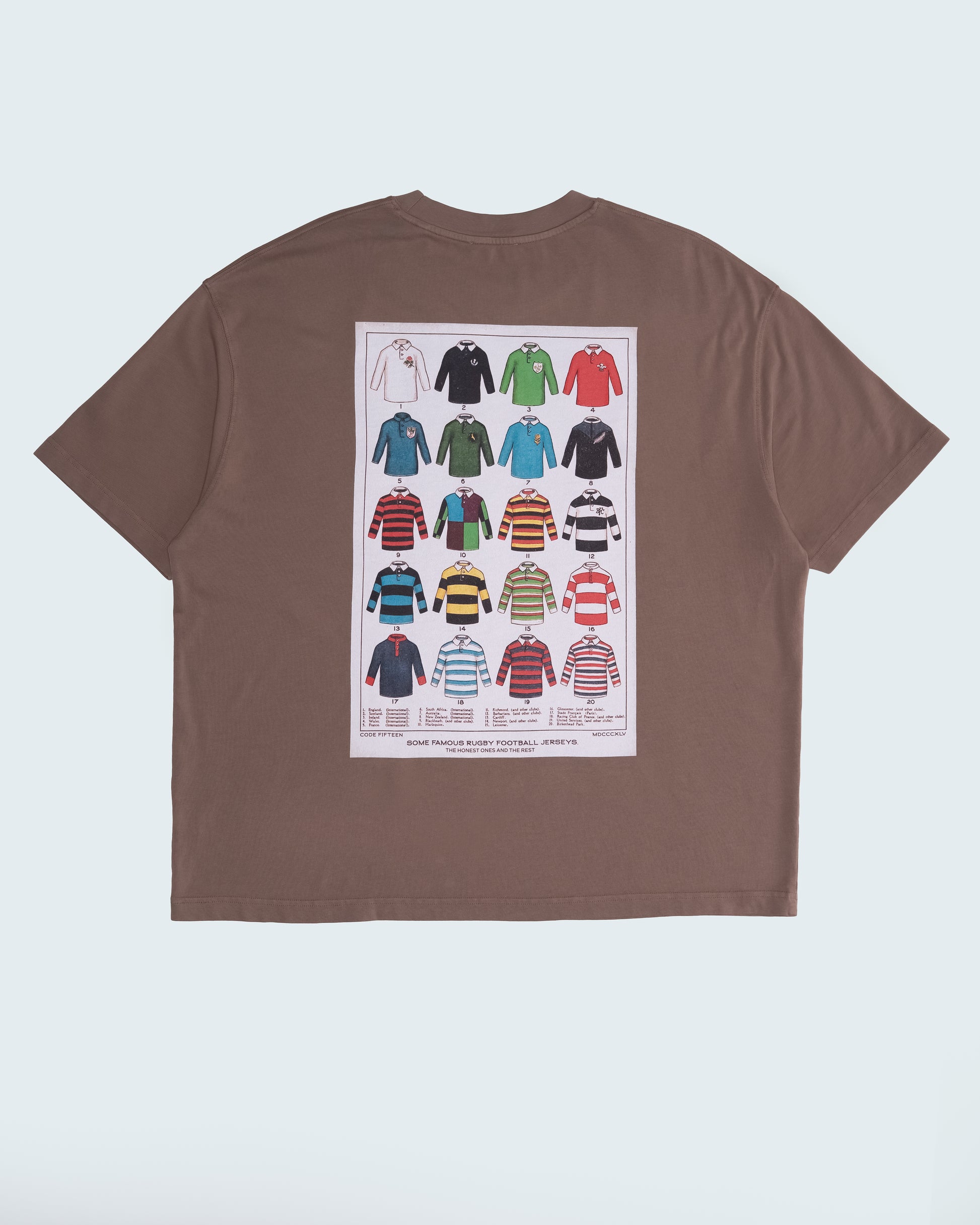 The Vintage Jersey tee has the classic 'Code Fifteen' logo embellished on the left chest and has a large graphic of vintage jerseys on the back.